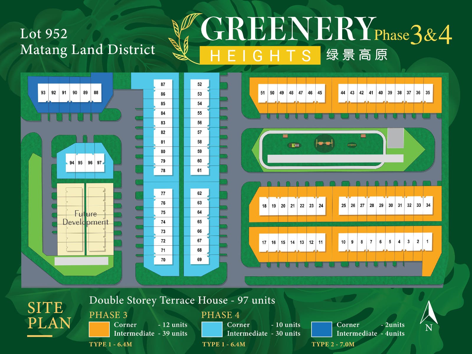 Greenery Heights is a hilltop double storey terrace housing project in Moyan, Batu Kawa, offering 4-bedroom homes with an 888-year leasehold, modern layouts, and easy access to Batu Kawa–Pan Borneo Highway, shops, schools, and daily conveniences.