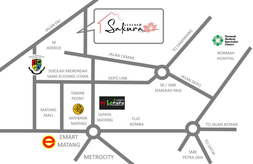 Perfectly located, Serene @ SAKURA enjoys convenient access to key amenities including schools, shopping centres, and healthcare facilities. With excellent connectivity via major roads and transport links, travelling to Kuching City and surrounding areas is seamless and hassle-free.