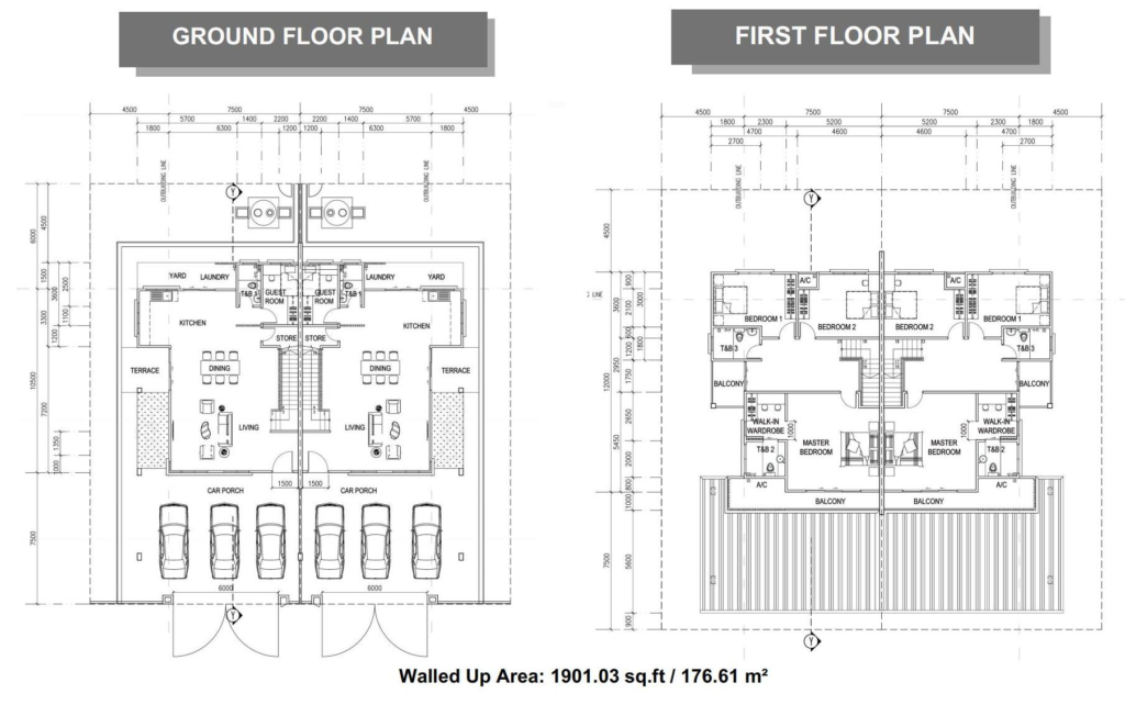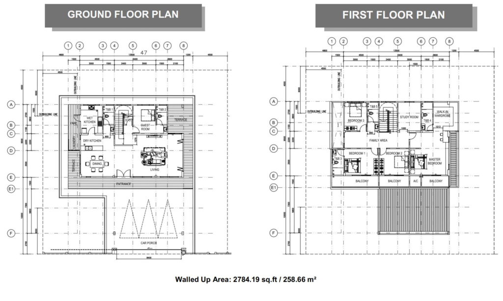 Walled Up Area: 1815.35 sq.ft / 168.65 m² (Intermediate Unit) & 1999.74 sq.ft / 185.78 m² (Corner Unit)